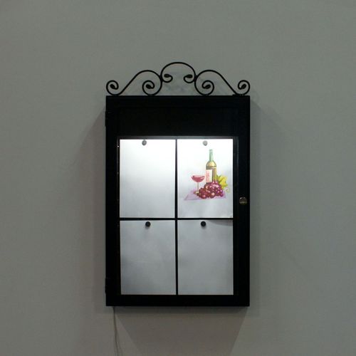 Tags: café lysskab menu menuskab menuskilt restaurant skab med krummelurer smedejernsskab med lys Surrow udhængsskab